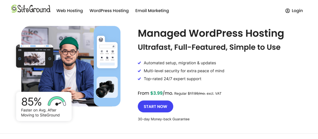 SiteGround is one of the most trusted names in WordPress hosting, known for its excellent performance, strong security features, and customer support.