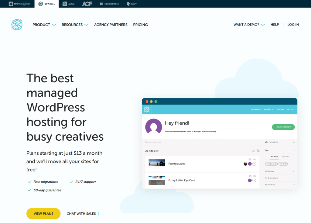 Flywheel is a managed WordPress hosting platform designed specifically for creatives. Flywheel provides tools that make collaboration seamless, workflows more efficient, and site management hassle-free.