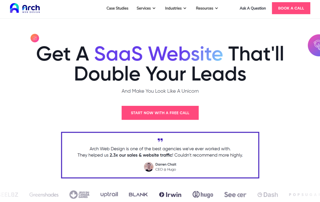 Overview: Arch Web Design specializes in creating high-converting, custom websites for SaaS companies and startups. They focus on data-driven designs optimized to increase sales and leads.