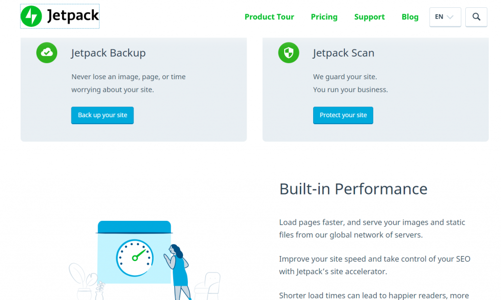 JetPack is a multipurpose website management plugin. Not only it acts as a backup and restore tool, but also as a website performance booster.