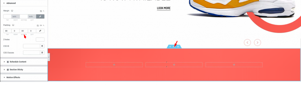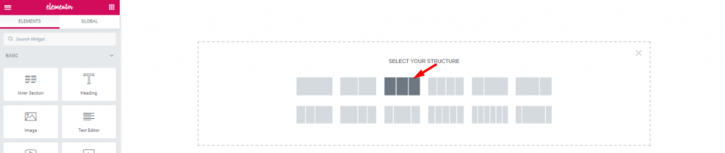 First, make a section with 3 inner sections. From the Layout option, give a suitable background color.