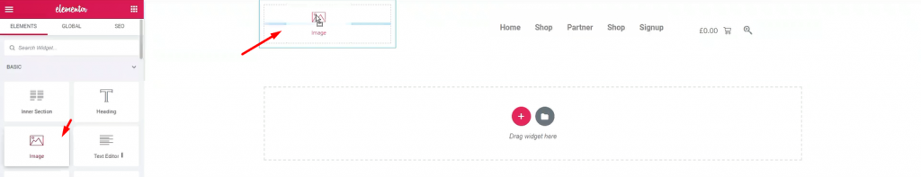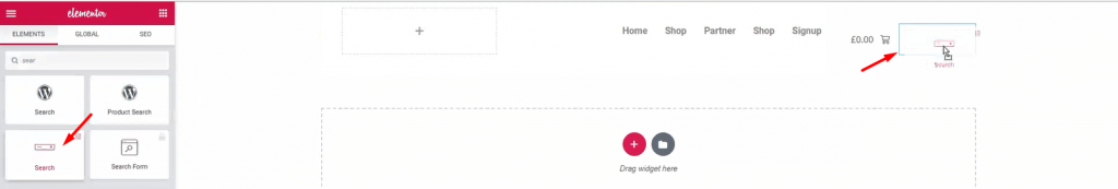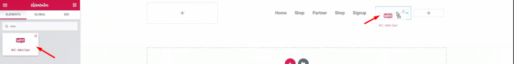 Dragging and dropping WooCommerce mini-cart by Element Pack on the left inner section.