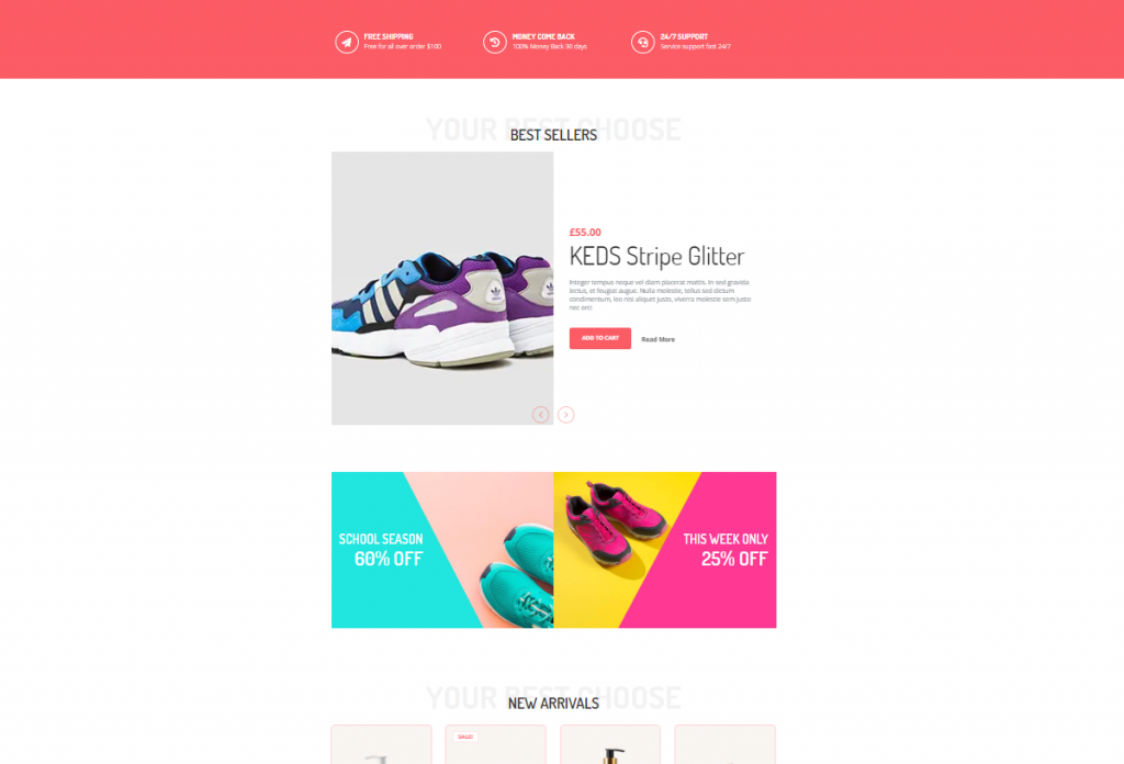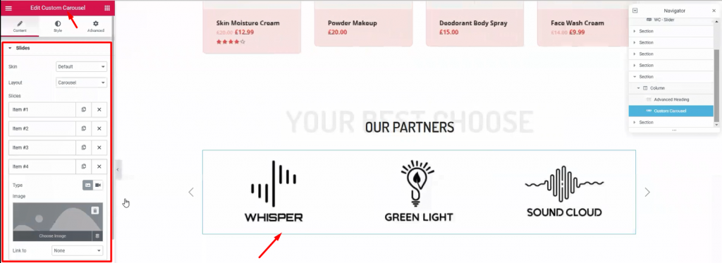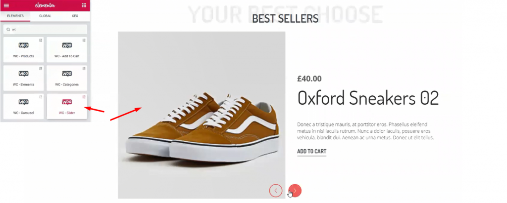 It’s time to show your visitor the first batch of products. Add WooCommerce Slider under the header.