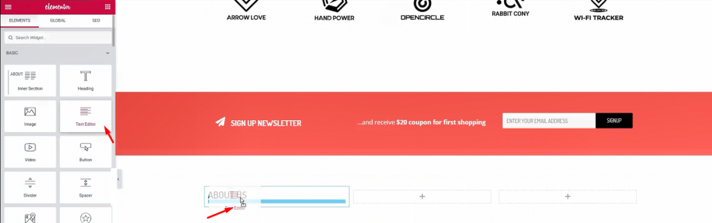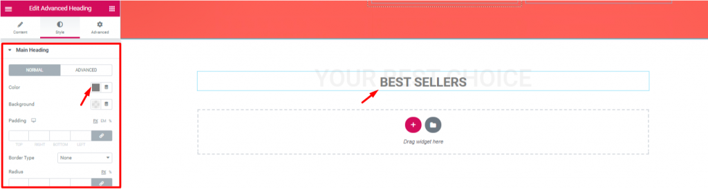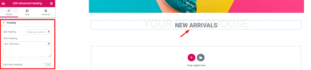 Let’s edit the heading to match the theme of the next section. Note that, the advanced heading widget is made by Element Pack.