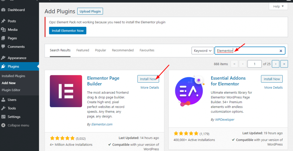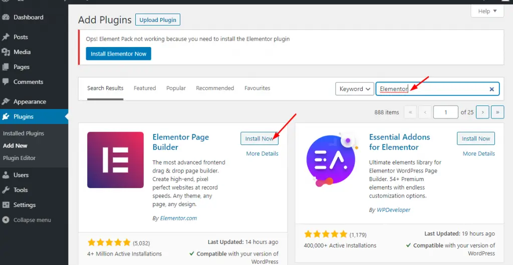 Step-2: In this step, you must install and activate the Elementor a page builder Plugin.