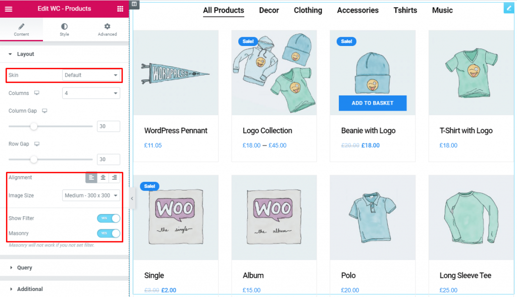Moreover, in this section, you can set the product image size and product filtering with masonry.