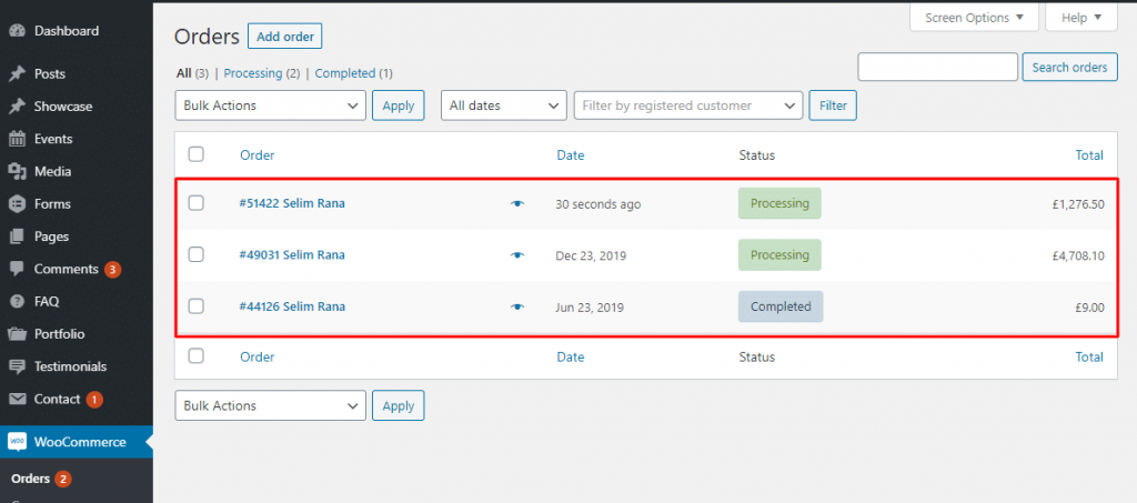 In addition, you will experience many different statuses (pending payment, on hold, refunded, failed canceled, etc.). You can click on each order to modify billing or shipping addresses, add notes, refund order, change the contents of the order, and more.