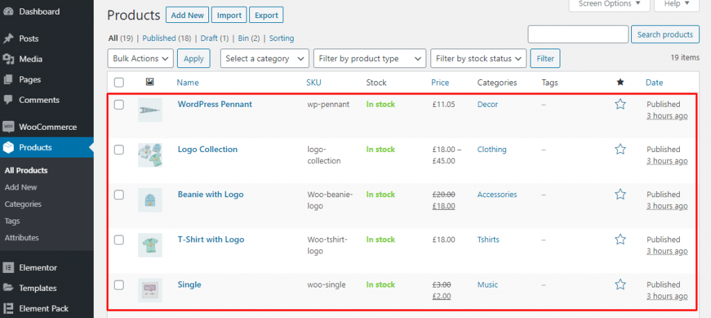 Step-3: After adding products, from the Products > Add New and saving, you can find your products in the list under as you can see.