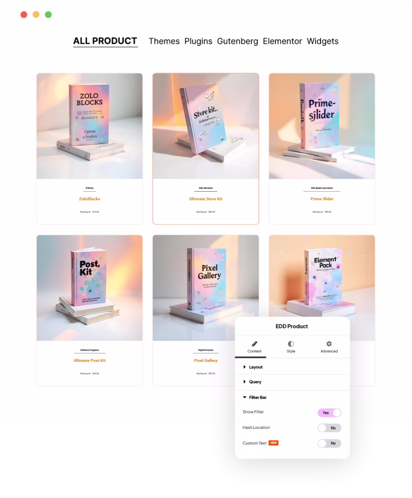 With the EDD Product widget from Element Pack, you can quickly help customers find exactly what they need using filter and sorting options.