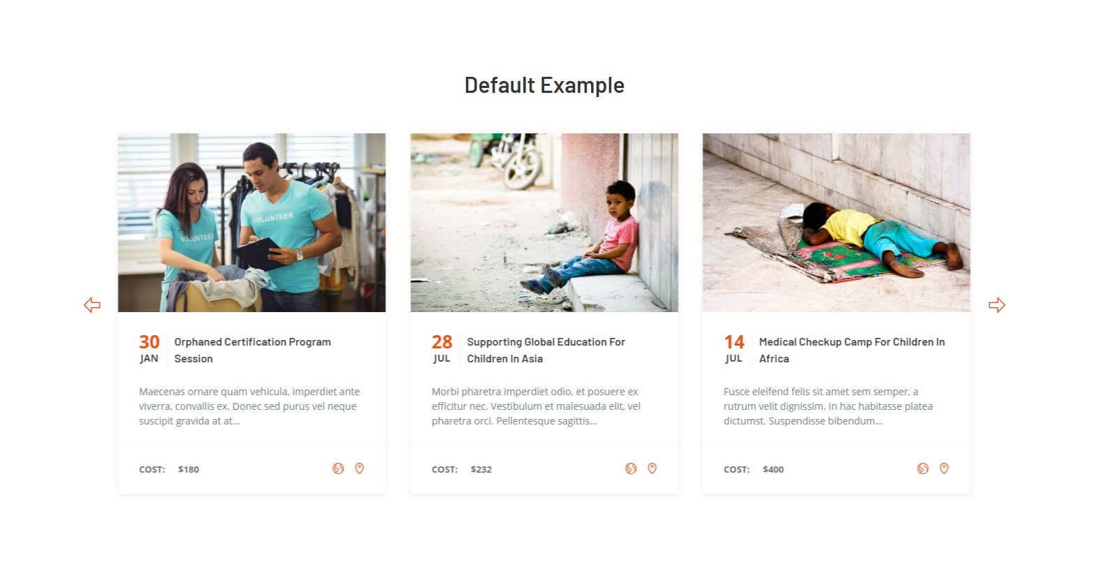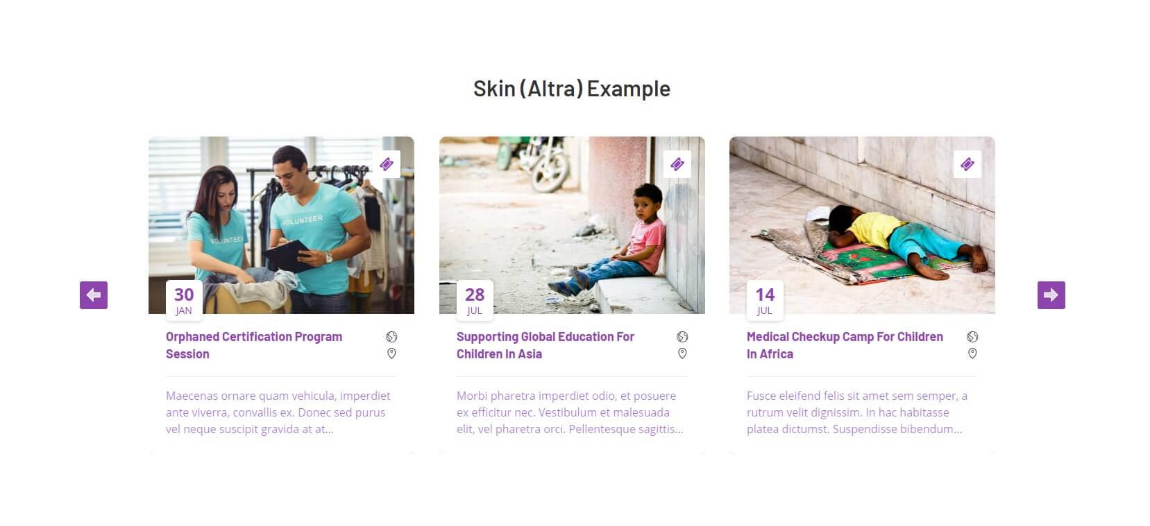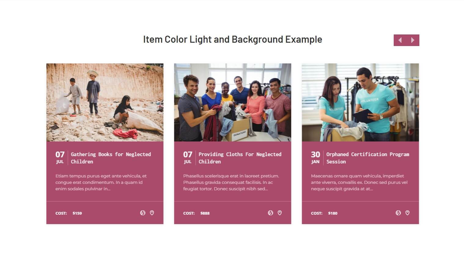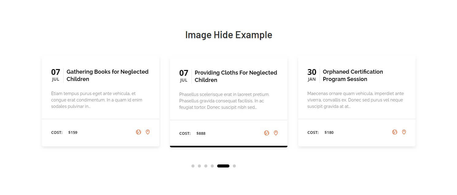The following images represent The Event Calendar Carousel widget demo. As a widget demonstration on our site, we have deactivated the actual widget. Activating the widget will result in identical demonstration..