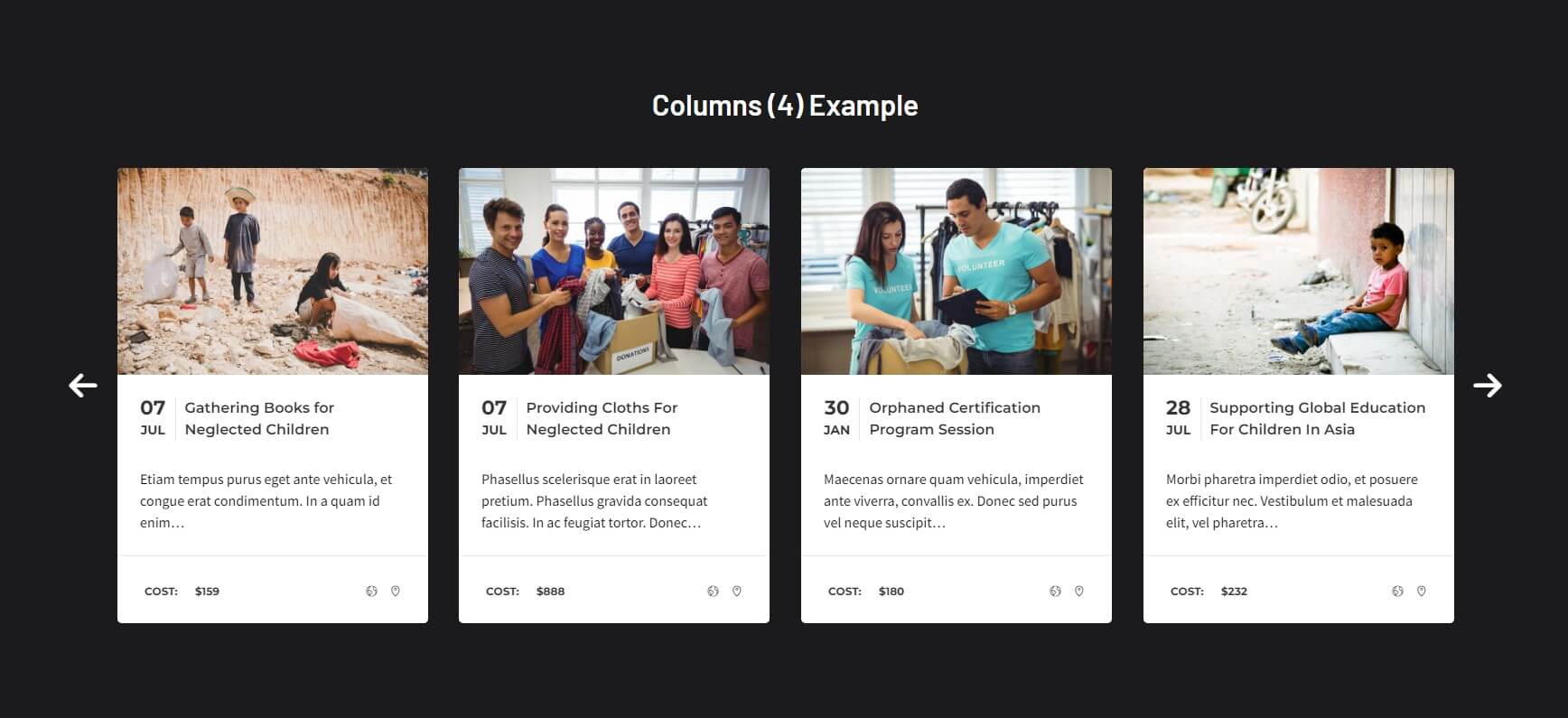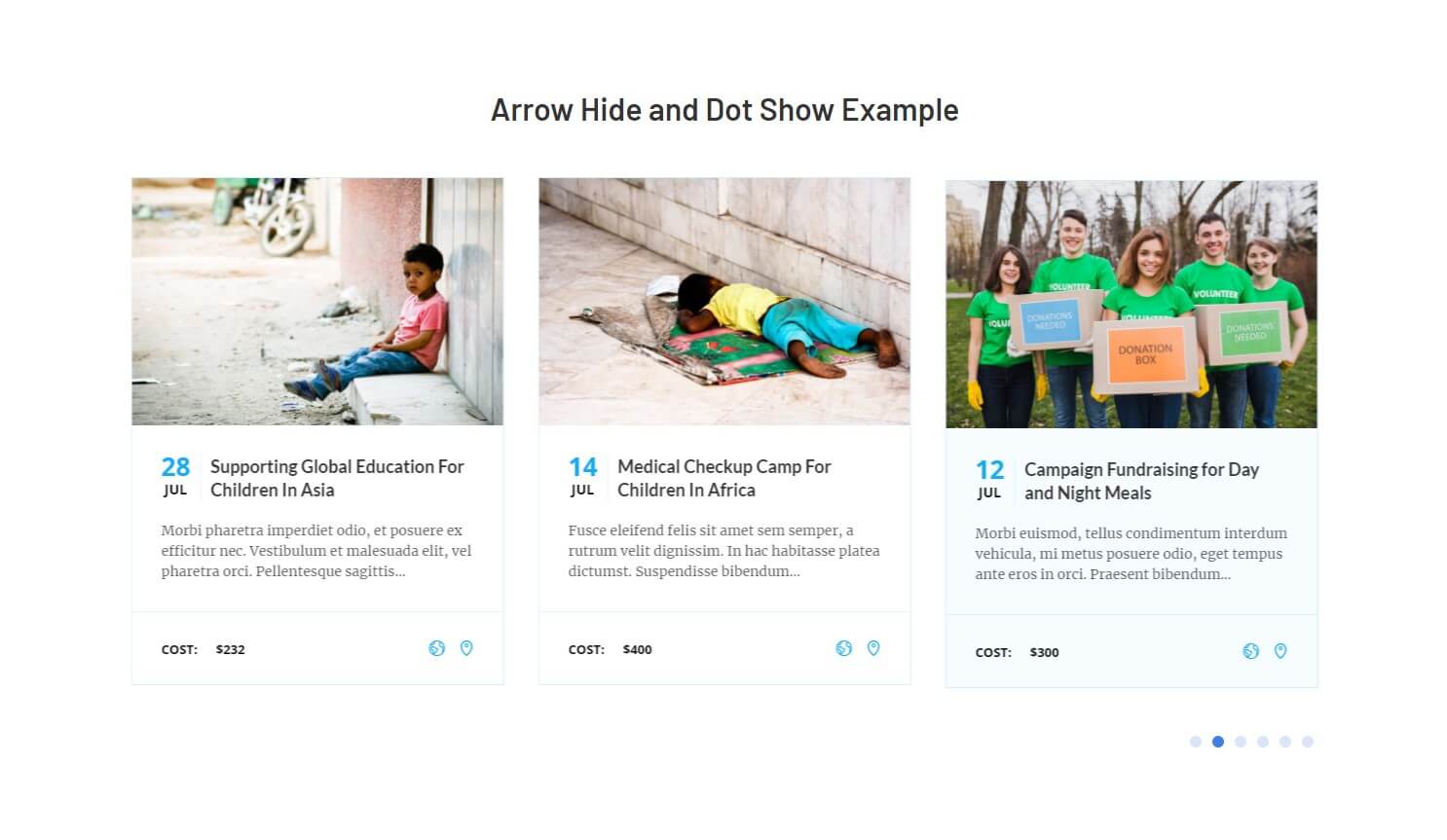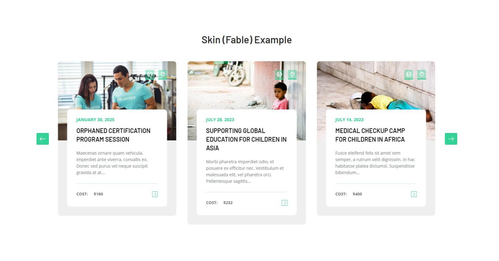 The following images represent The Event Calendar Carousel widget demo. As a widget demonstration on our site, we have deactivated the actual widget. Activating the widget will result in identical demonstration..