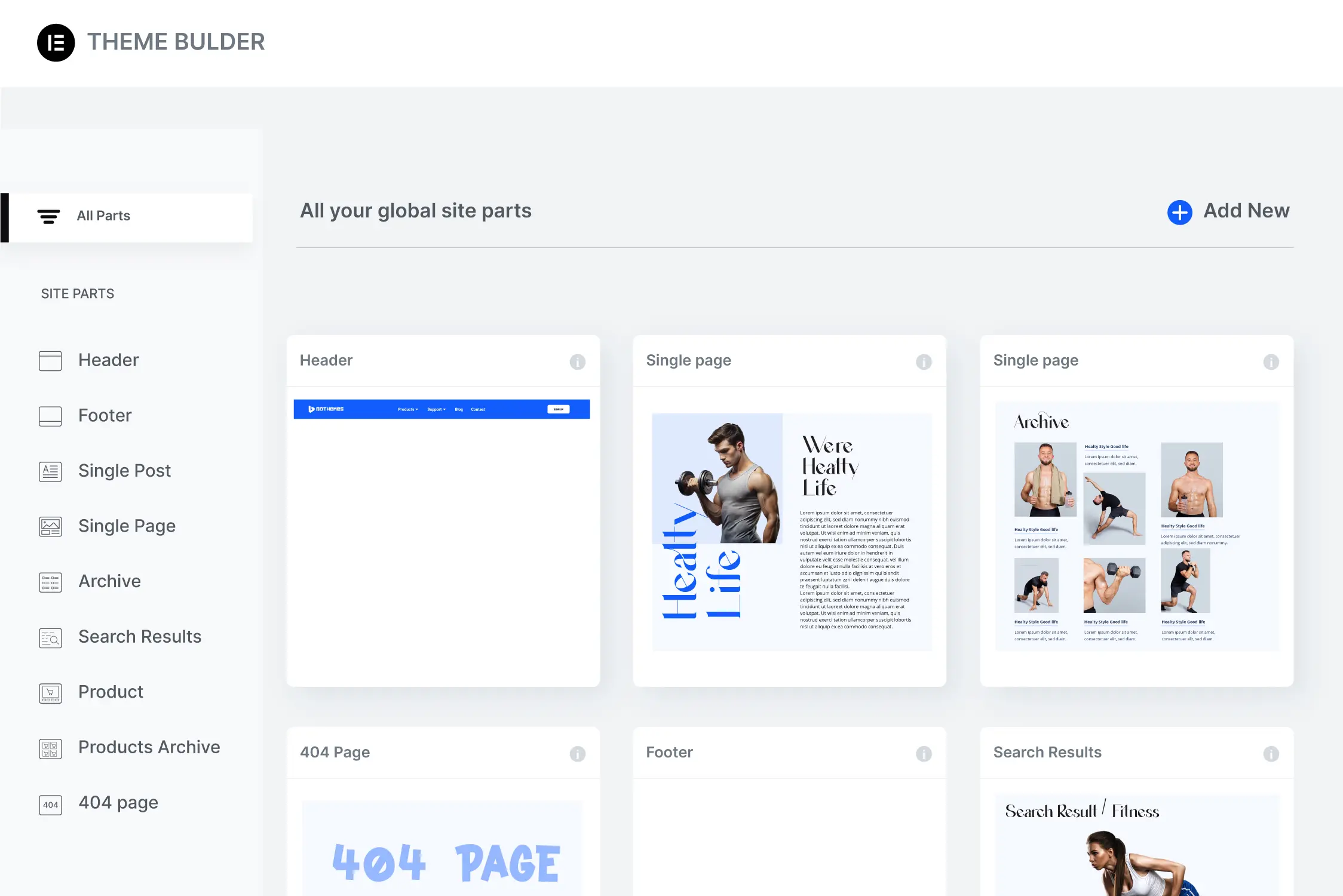 Design headers, footers, archives, and single posts — all visually, all without code. Theme Builder lets you break free from rigid templates and create a 100% custom WordPress site.