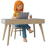3d Female character working desk with laptop. 3d Female character working desk with laptop