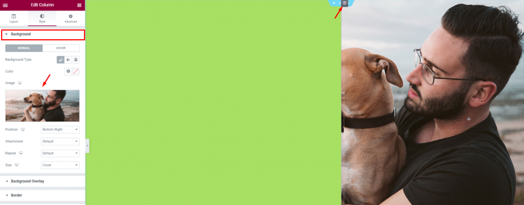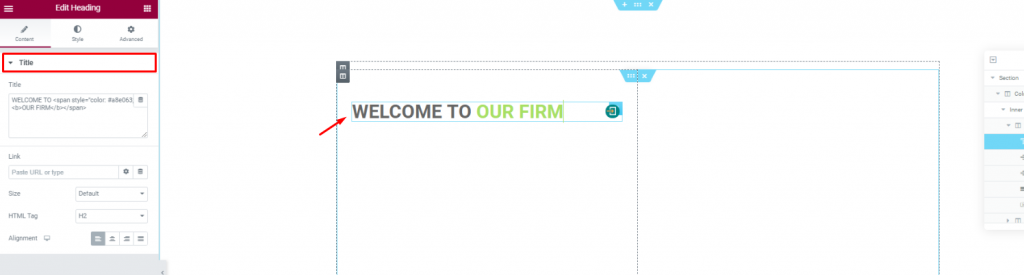 Create a double-column section. Insert the Heading widget on the left column.