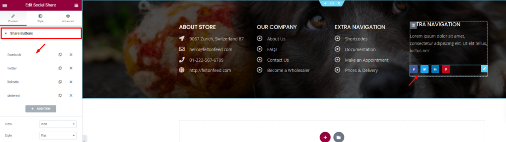 Put your social media links using the Social Share widget at the end of the footer. That’s it!