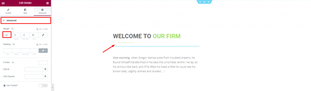 Put a Divider widget under the title to boost its look. Place a short description of the company below.
