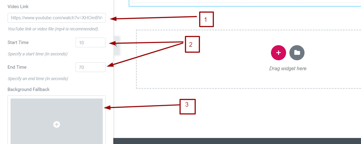 You can give any YouTube video link as your background video. You can also upload any .mp4 video using media library and give the actual permalink of that video. You can specify the start and end time of the video as marked 2 in the image above. You can also provide a fallback image as marked 3. A fallback image will work when there will be some playback issue for the video. Once you are done just save it. You will get something as below: