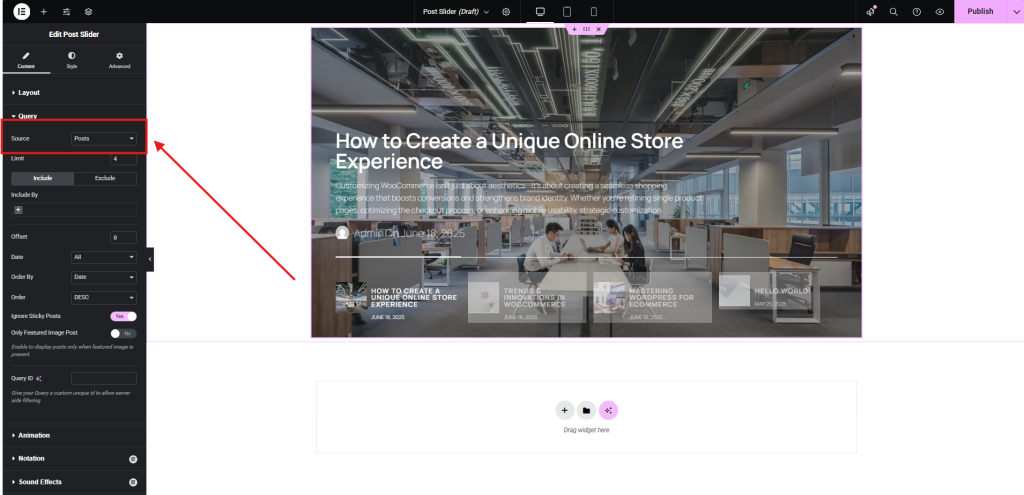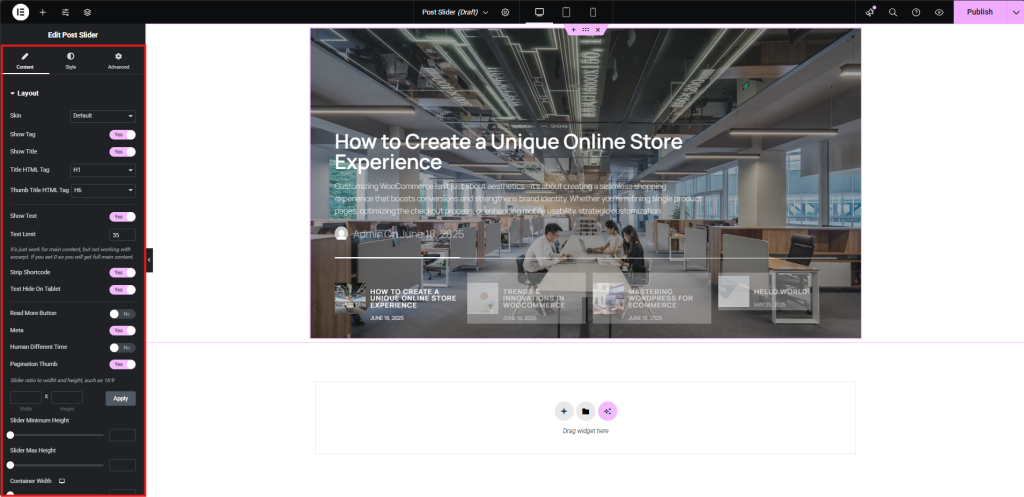 Step 1. Add post carousel slider widget to your page