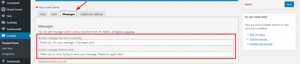After that, go to the Messages tab and write in the corresponding messages in the text fields. This part is also set as default and you can leave it unchanged if you like to.
