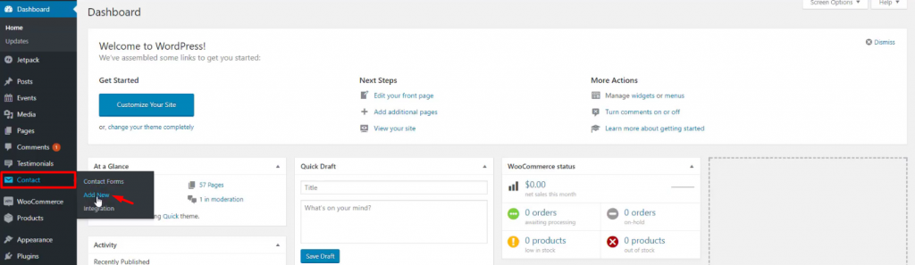 Look for the tab Contact from your dashboard, navigate it, and click on Add New. In this step, we are going to develop the form.