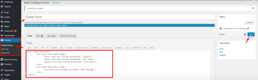 Configuring Contact Form 7 is not so hard. The widget gives you the option to design and develop your form with a custom-code insert option. So, it’s a good thing that you use this widget.