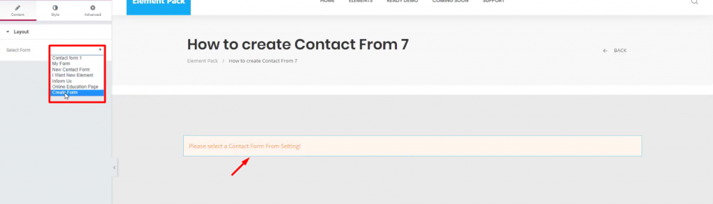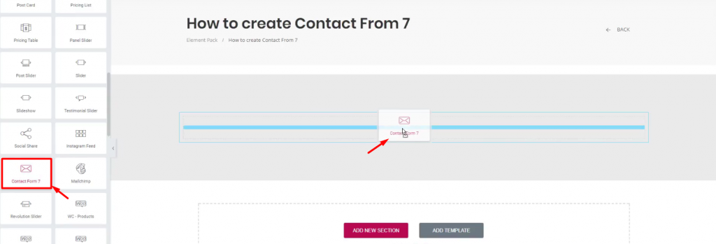 Go to your page editor and select Edit With Elementor. There, from the widget menu, select Contact Form 7 and place it inside the page.