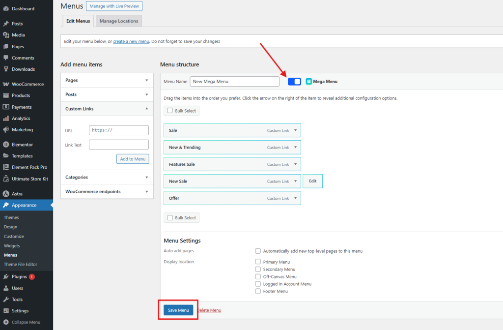 Now you need to create your mega menu. Follow the basic steps below for effective menu management.