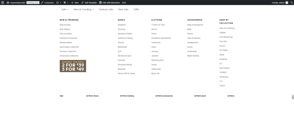 - Here, I am copying Adidas’ demo’s Men’s menu element