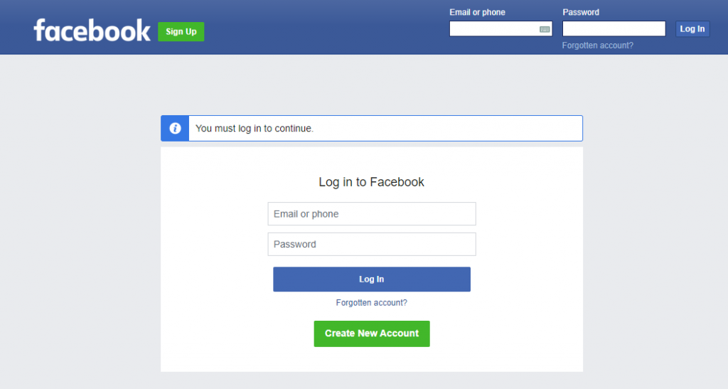 In the case of Facebook, their login page has a header along with the content body. The page tells visitors exactly what it is.