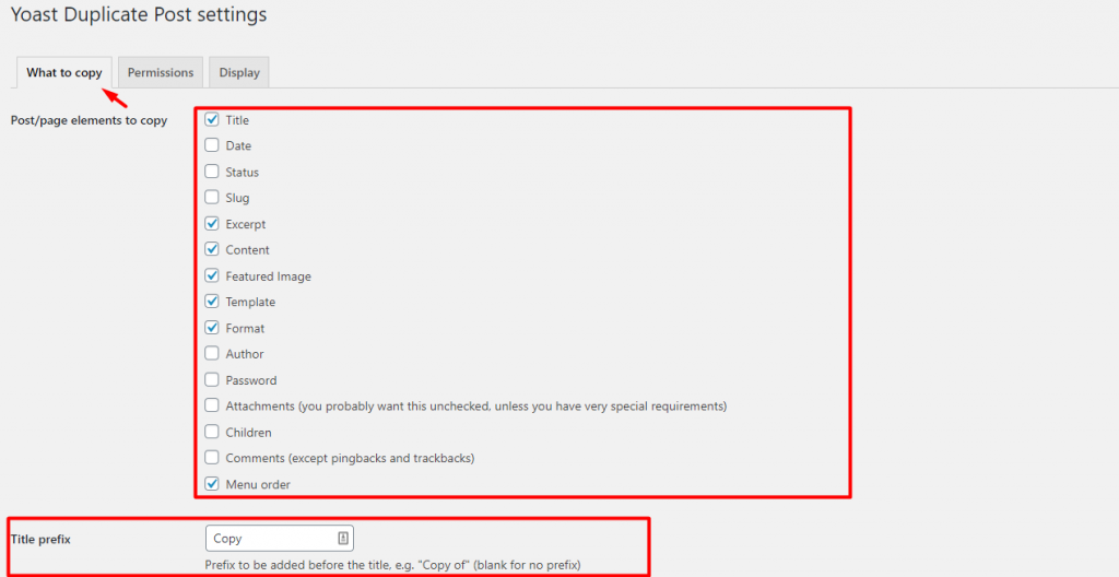 Also, you can put a Title Prefix that will show as the title of the duplicated post from the What to copy section. Note that we have put Copy as the title prefix. As a result, all duplicated posts will have the word Copy in front of their title.
