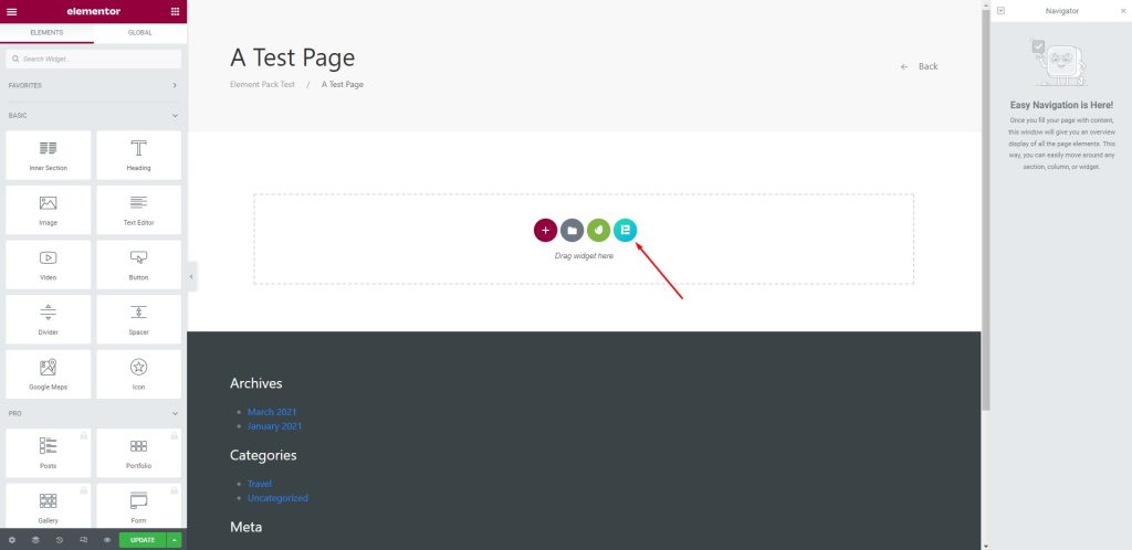 First, hit the Elementor button on your page to go to the Header template library.