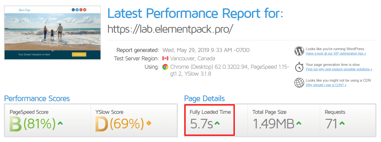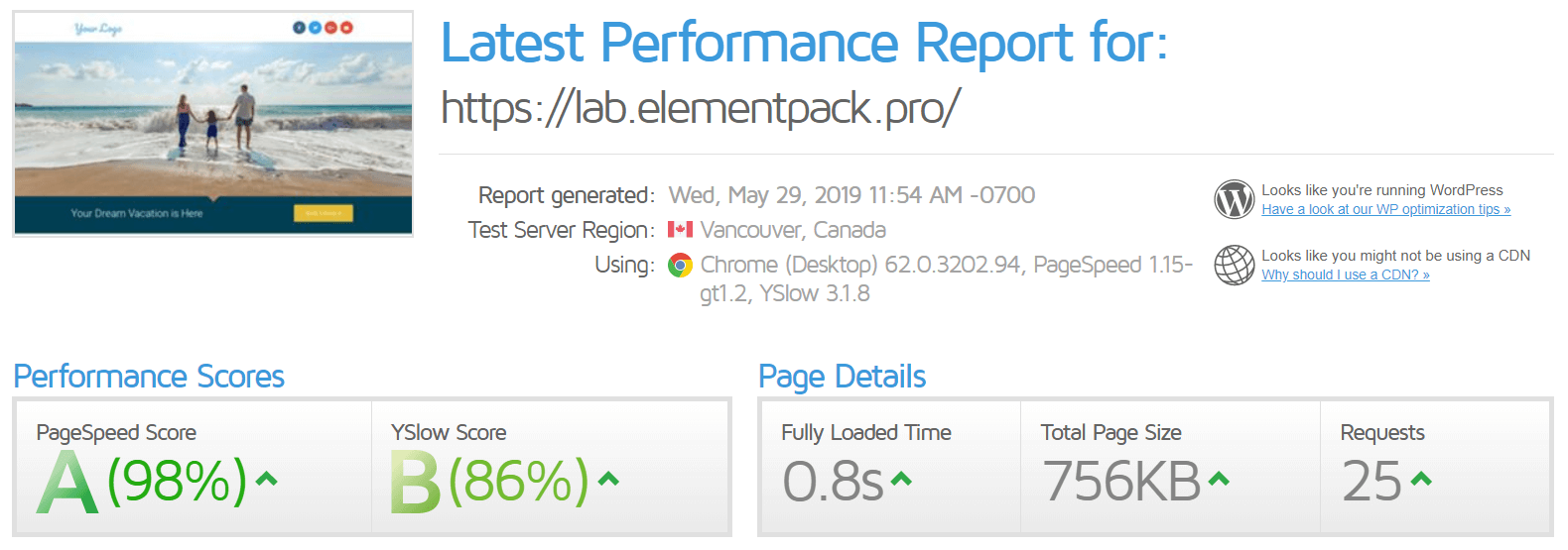 Do you remember the first image with https://lab.elemenetpack.pro ? It wasn’t optimized. Now with the method mentioned above, I have done an optimization and here is the result: