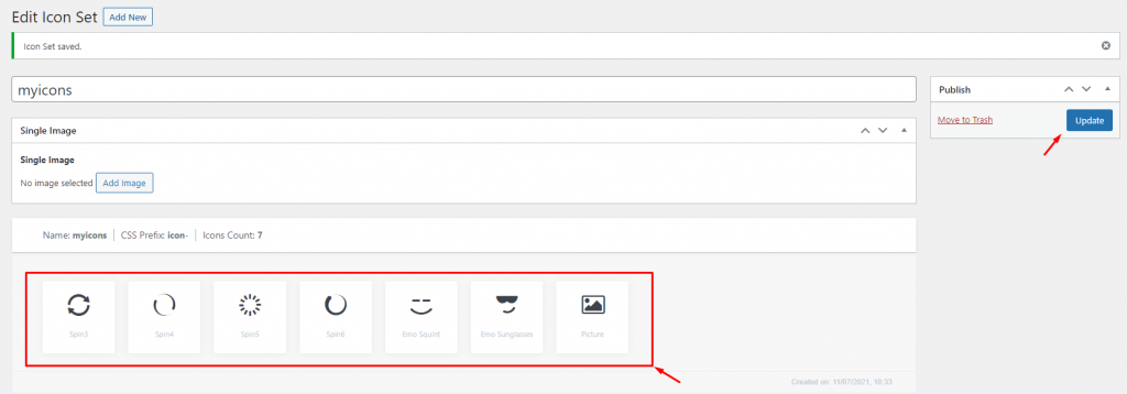By clicking the upload button, it will take you into the custom icon menu inside the WordPress dashboard.