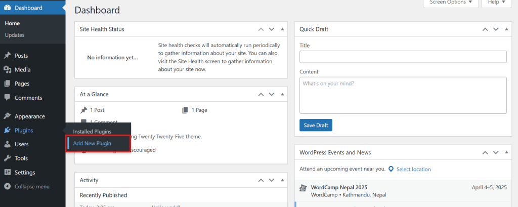 - Log in to your WordPress admin panel and navigate to Plugins > Add New.