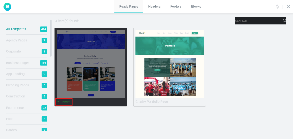 - Once you’ve found a template that fits your needs, click Insert to add it directly to your page.