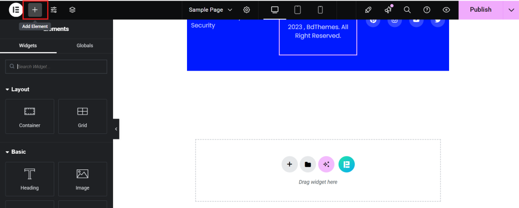 - Add new sections or columns by clicking the Add Section (+) button in the Elementor toolbar.