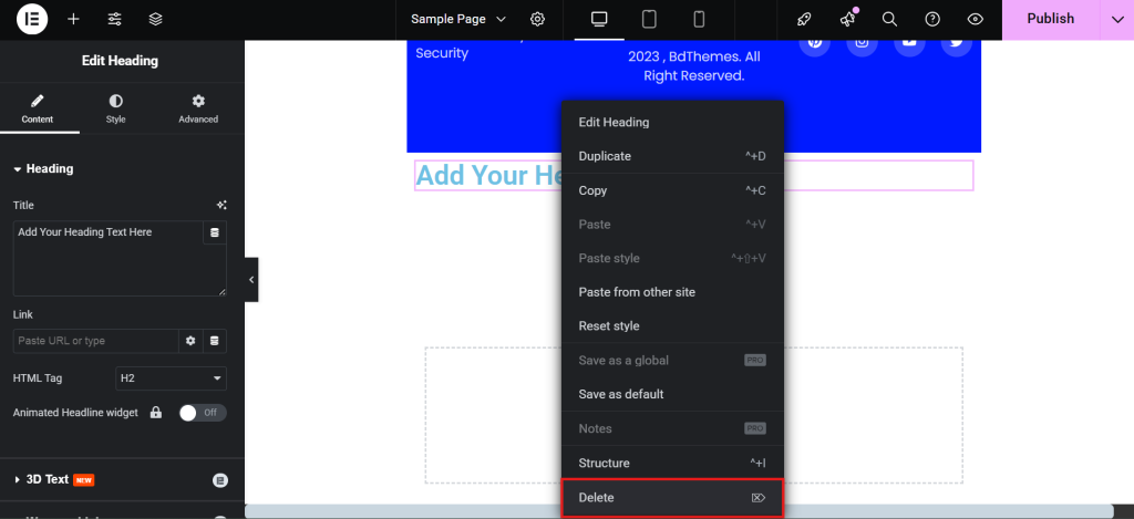 - Use the right-click menu to delete or duplicate widgets and sections for efficiency.