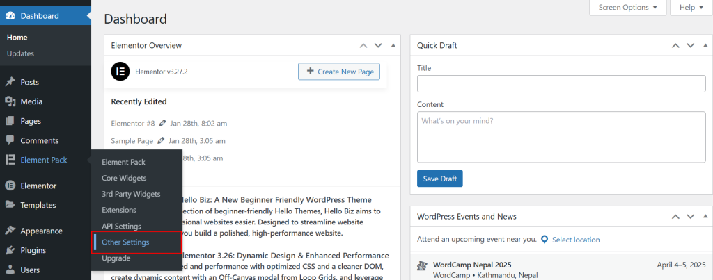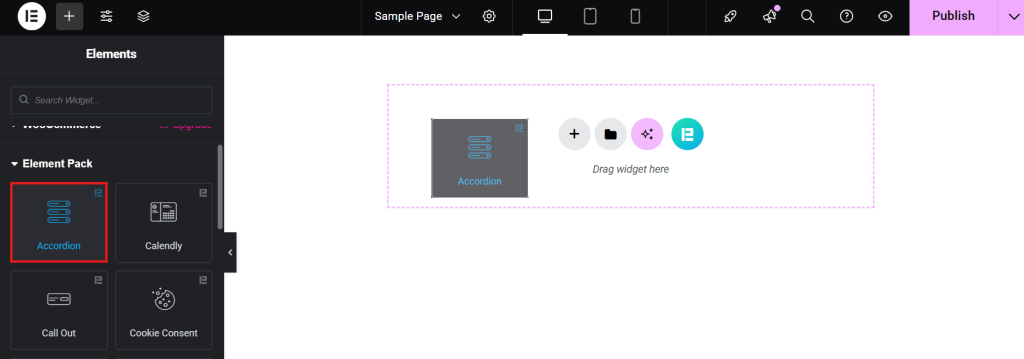 - In the Elementor editor, navigate to the Element Pack Widgets section.