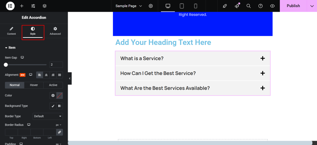 - Use the Style Tab to customize colors, borders, and hover effects.