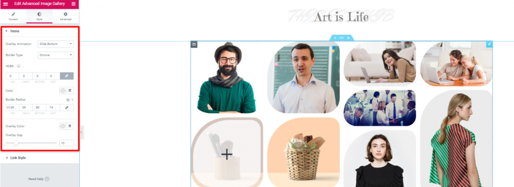Ops! I forgot to mention. I’ve made that unique image shape using the Border Radius option. Hence, try it out yourself and create a unique photo gallery website.