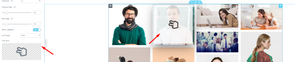 Additionally, you have an option to add a tilt effect. Also, you can choose lightbox animation from here. Note that, lightbox will appear when you click on the link button.