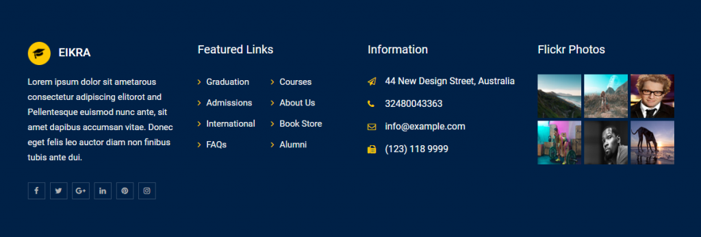 Like numerous websites, distance-learning or e-learning website also allows a footer section that contains important information such as a copyright notice, a disclaimer, a few links, etc. Therefore, for these things, you should keep the footer section on your website.