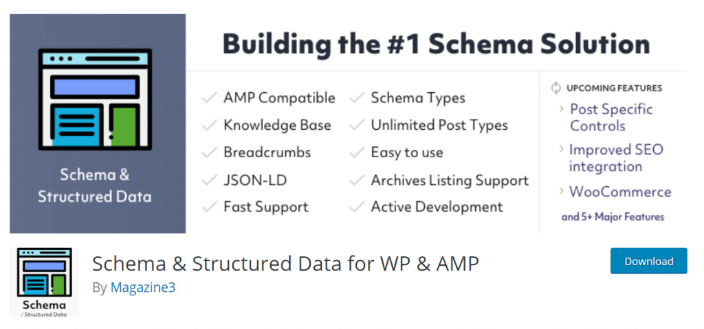 Schema & Structured Data for WP & AMP is another incredible schema plugin that supports over 33 schema methods. It has dual compatibility with WordPress and APM.