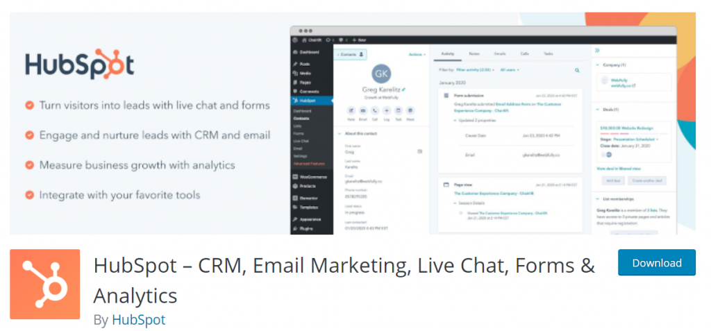 HubSpot All-In-One Marketing is a freemium email marketing plugin, known as both reliable and packed with features. This is the best tool for individuals that are still in the beginning phase. With this tool, you can create a complete professional email marketing system on your own. It’s seemingly lightweight and fast compared to regular ones of course. Let’s see what it has to offer: