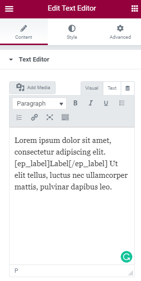 The Label shortcode is for adding labels to your texts. It lets you choose your words for the label as well as the color of the label.