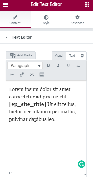 This shortcode displays the site title within the text area once used. You may need to show your site title on many occasions and this code will handle it dynamically. Meaning that it will show the live site title and will change as the site name changes.
